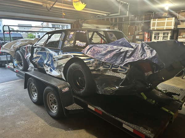 @ Lancaster Motorplex Lancaster NY. On a restart around lap 15, entire field went green with many cars involved getting damaged.